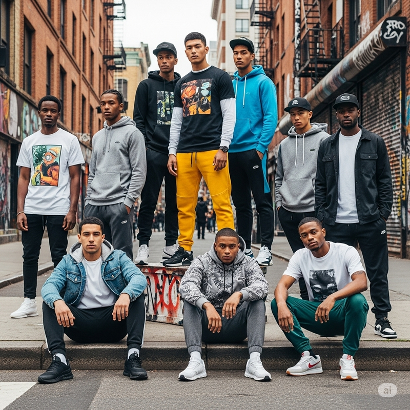 The natural urban backdrop of brick buildings and city streets further reinforces the authentic streetwear vibe, making this look ideal for everyday city life while maintaining a fresh and relevant edge.